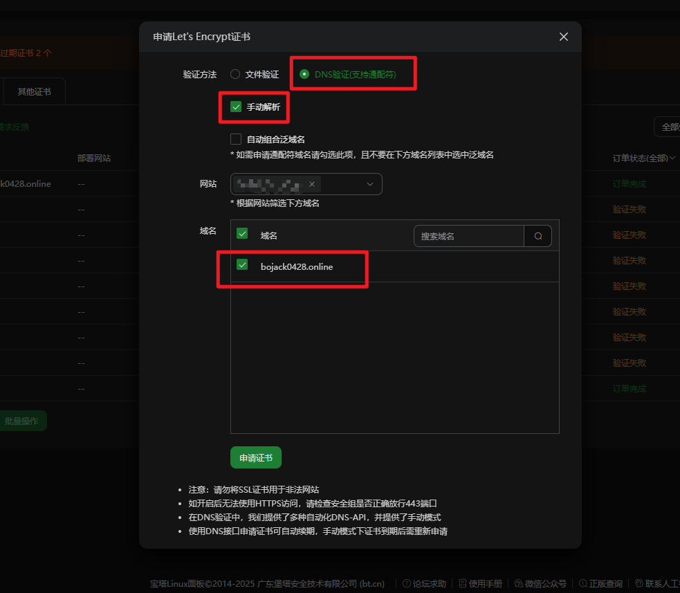 宝塔面板申请Let's Encrypt证书DNS验证失败2025最新解决方案